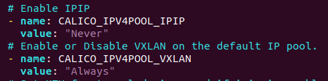 -name: CALICO_IPV4POOL_IPIP value: "Never" |