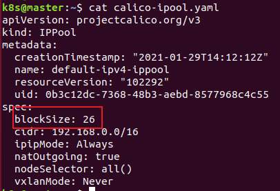 Block 크기는 기본적으로 64개의 주소(/26)를 가질 수 있으며, 이는 IPPool 리소스를 수정함으로 변경 가능하다.