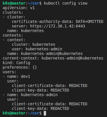 kubectl config set-credentials dev1 --client-key=dev1.key --client-certificate=dev1.crt --embed-certs