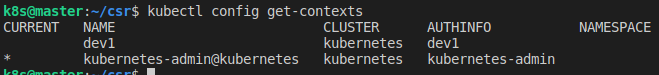kubectl config set-context dev1 --user=dev1 --cluster=kubernetes