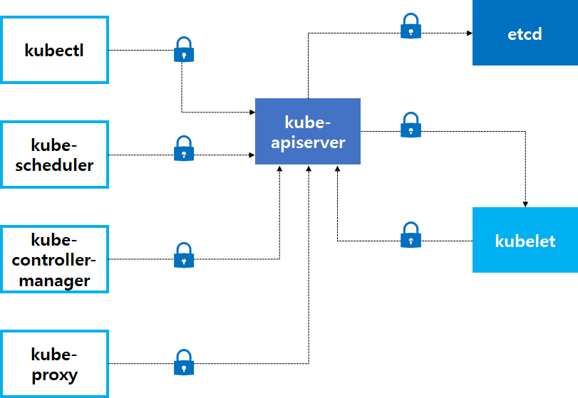 아래 그림과 같이 Kubernetes에 존재하는 모든 Component 간 통신은 HTTPS를 기반으로 이루어지며, 모든 트래픽이 암호화되므로 데이터의 신뢰성과 보안을 보장할 수 있다.