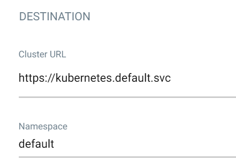 Application이 배포될 곳으로 현재 ArgoCD가 배포된 k8s Cluster를 선택한다. 'default' Namespace에 배포하되 다른Namespace를 사용하고 싶은 경우 미리 생성하거나, 'AUTO-CREATE NAMESPACE' 옵션을 활성화하자.