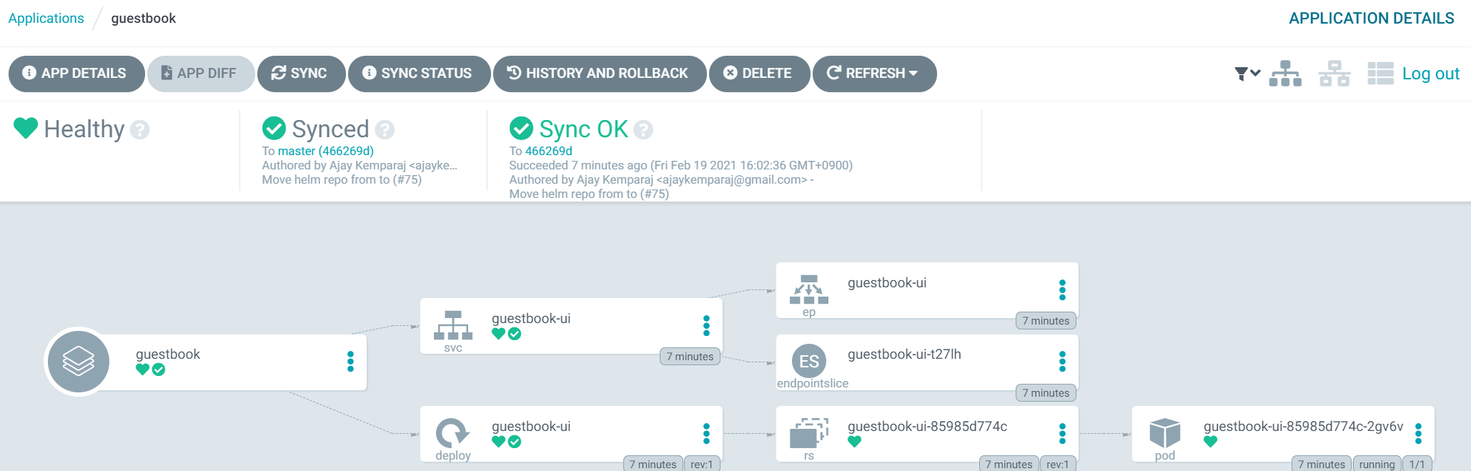 guestbook App을 선택하면, Application Details 메뉴로 이동할 수 있다.