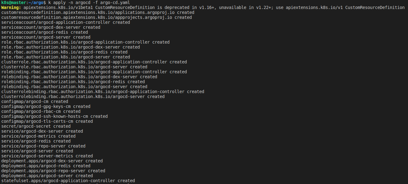 이제 모든 준비가 됐으니, k8s에 Argo CD를 배포한다.
