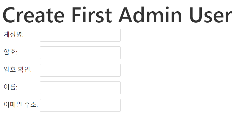 플러그인 설치를 완료하면 이번엔 첫 관리자 계정을 추가하는 메뉴다. 원하는 계정 정보를 입력하여 생성을 완료하자.