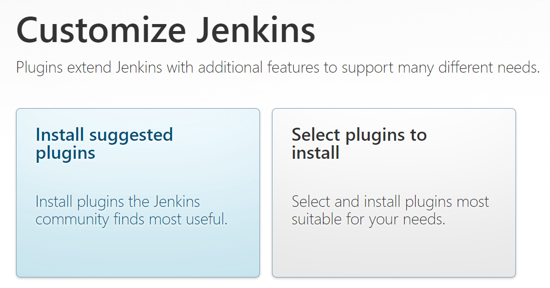 'Install suggeted plugins'를 선택하면 Jenkins가 알아서 Git, Pipeline, Mailer 등의 중요 플러그인들을 자동으로 설치해준다. 네트워크 사정에 따라 보통 5~10분 정도 소요된다.
