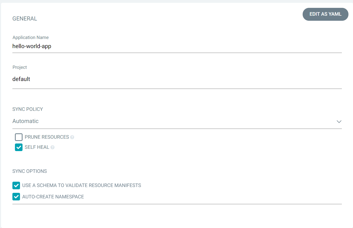 아래와 같은 내용으로 Argo CD Application 'hello-world-app'을 정의해 보았다.