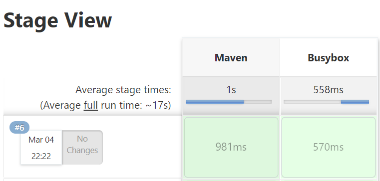 실제 로그를 확인하면 Pod Template에 정의한 대로 Agent를 생성한 뒤, maven 컨테이너로부터 'maven -version', busybox 컨테이너로부터 '/bin/busybox' 명령어의 결과를 출력하고 있음을 알 수 있다.