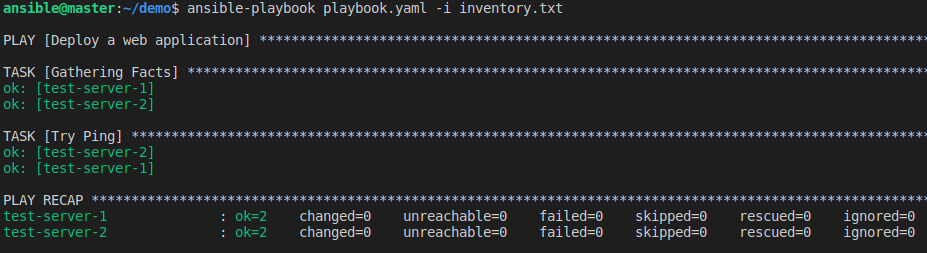 이제 모든 준비가 끝났으니, 아래 명령어로 Ansible Playbook을 수행할 차례다.