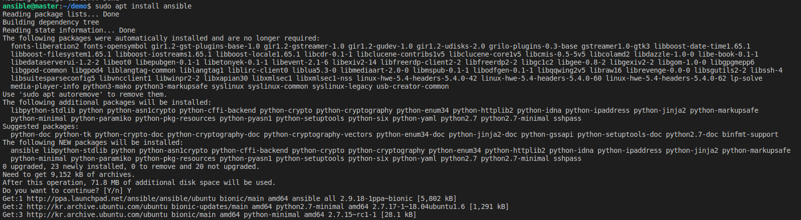 Ubuntu 환경에서 다음 명령어로 Ansible을 손쉽게 설치할 수 있다. Ansible Controller로 사용할 Machine에서 실행한다.