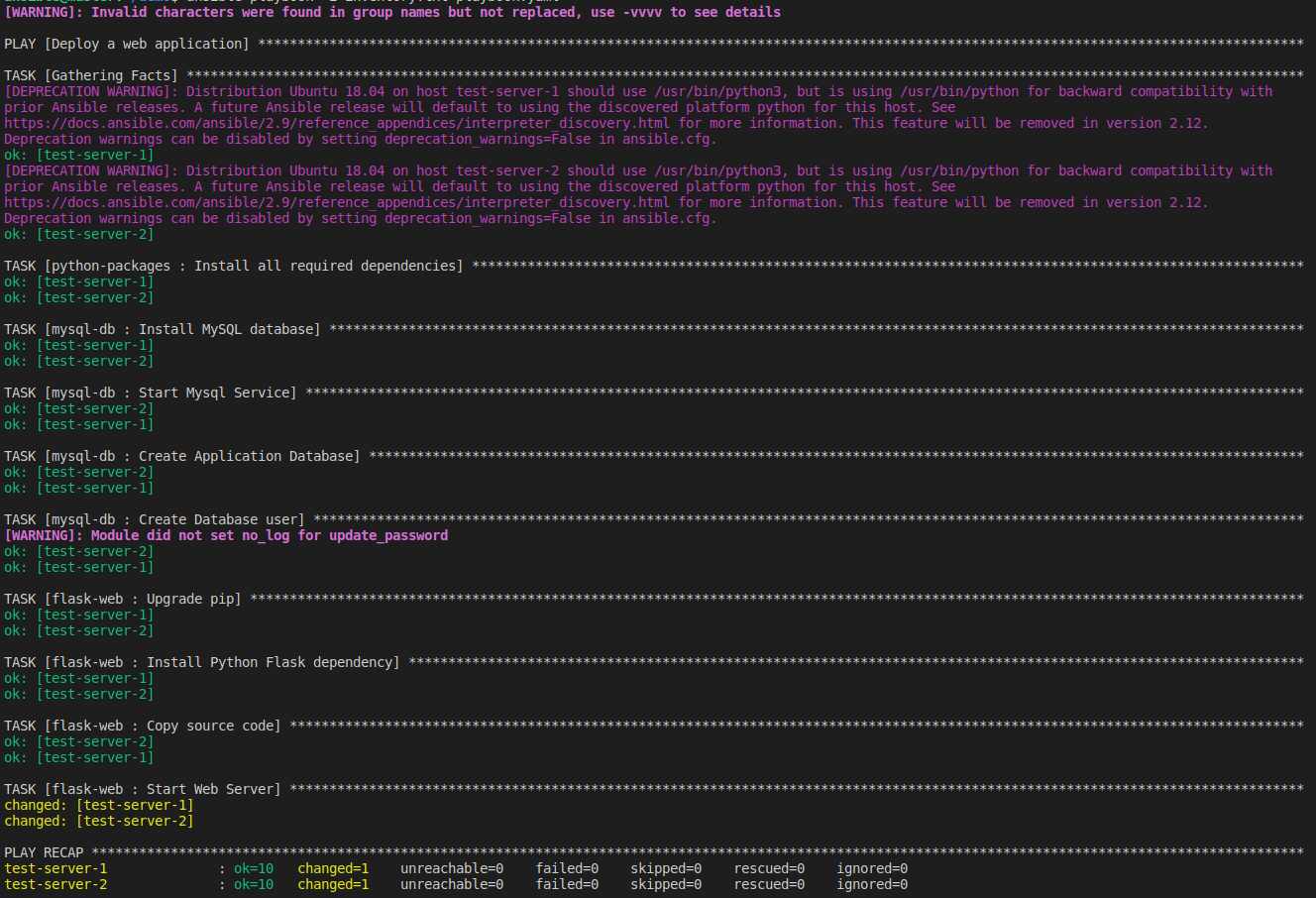 문제없이 작업이 완료된 것을 알 수 있다. 이렇게 구현한 Role은 GitHub에 올린 뒤, Ansible Galaxy 커뮤니티를 통해 공유하는 것이 일반적이다. 다음번에 기회가 된다면, 이 공유 방법에 대해 설명하는 포스트를 작성하겠다.