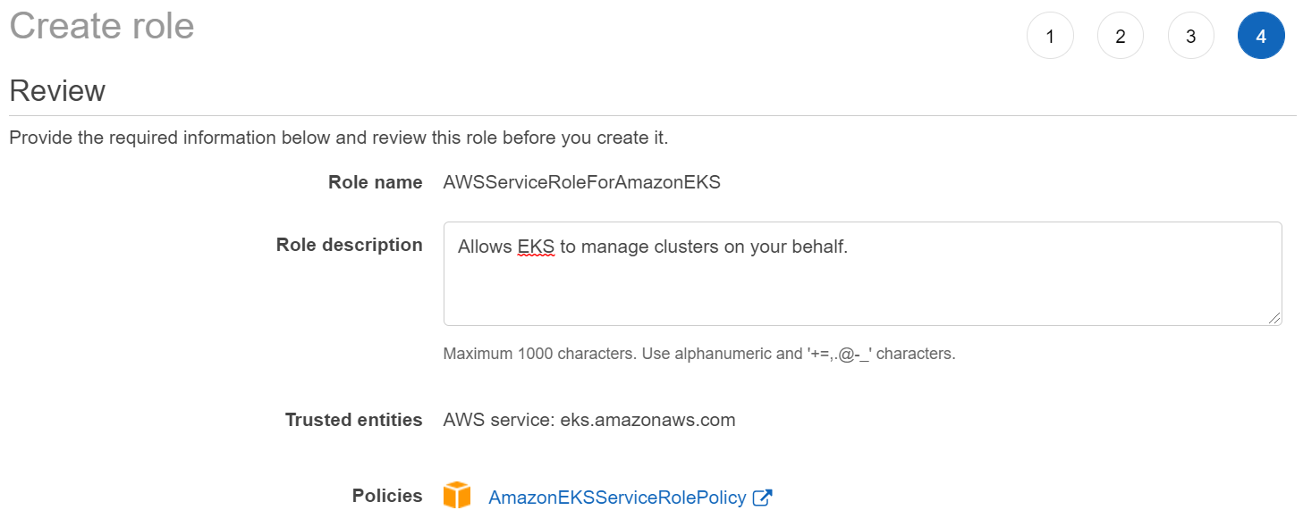 다음은 IAM Role을 아래와 같이 추가하여, EKS가 사용자 대신 AWS 서비스를 호출할 수 있도록 한다.