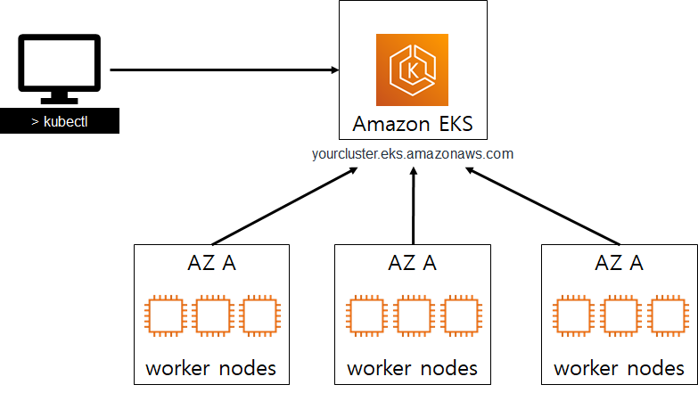 고가용성(High Availability) 및 확장성을 위해 일반적으로 3개의 Multi-AZ로 구성하며, 각 AZ마다 AWS가 관리하는 Master Node와 etcd가 존재한다. 그리고 Worker Node는 일반적으로 Auto Scaling Group을 통해 생성되며, 이 경우 Kubernetes의 Cluster Autoscaler 기능을 사용할 수 있다. ASG에 속하지 않은 EC2 Instance도 Worker Node로 사용 가능하다.