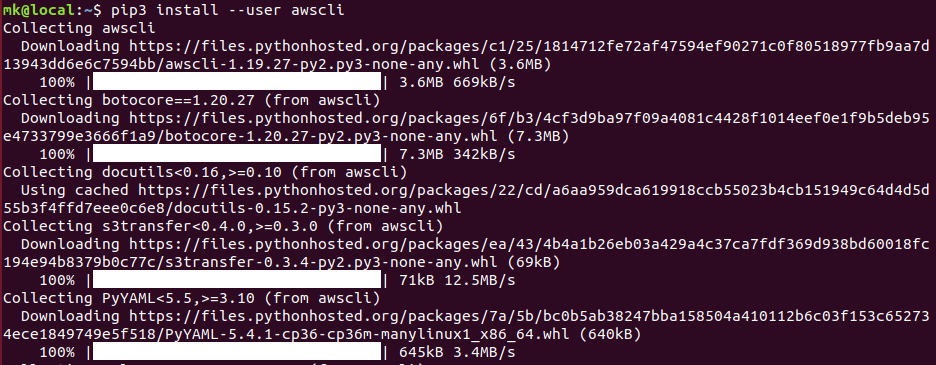 가장 먼저 아래 명령어로 awscli를 설치한다.