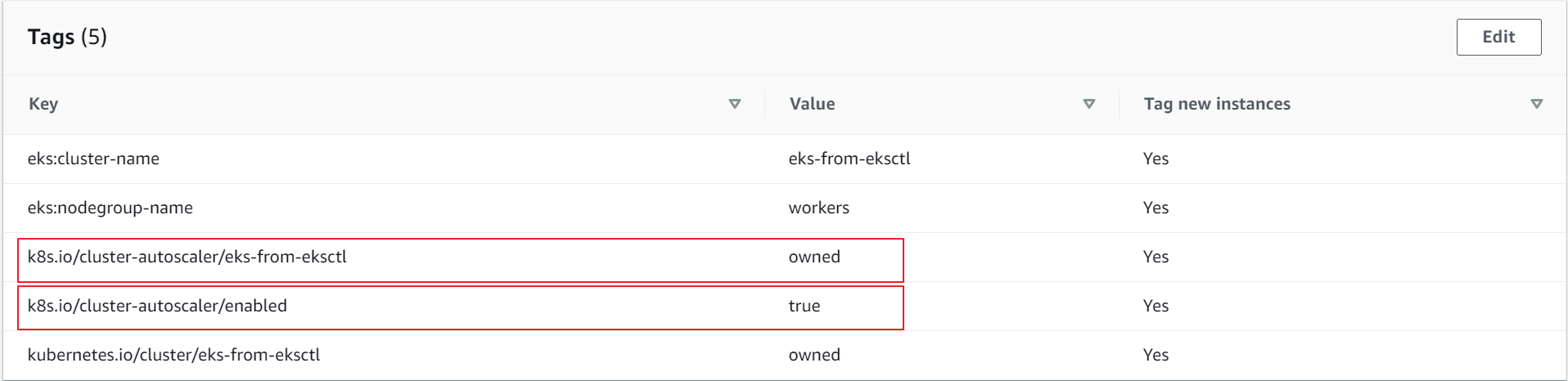 k8s.io/cluster-autoscaler/<YOUR_CLUSTER_NAME> = owned