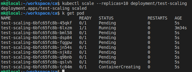 kubectl scale --replicas=10 deployment/test-scaling