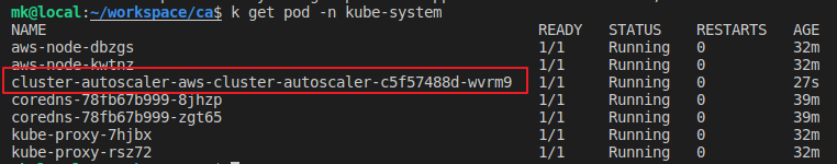 다음 명령어로 Cluster Autoscaler를 kube-system namespace에 설치할 수 있다.