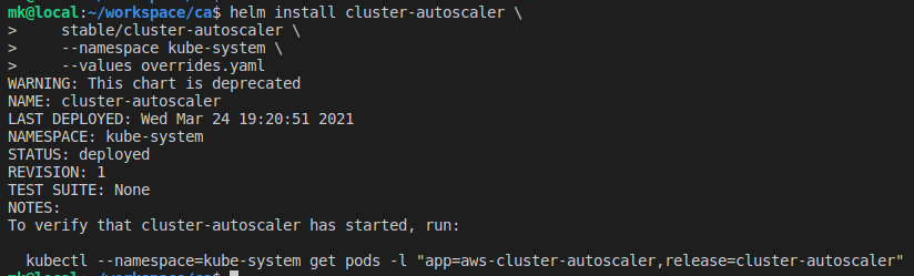 helm install cluster-autoscaler \
