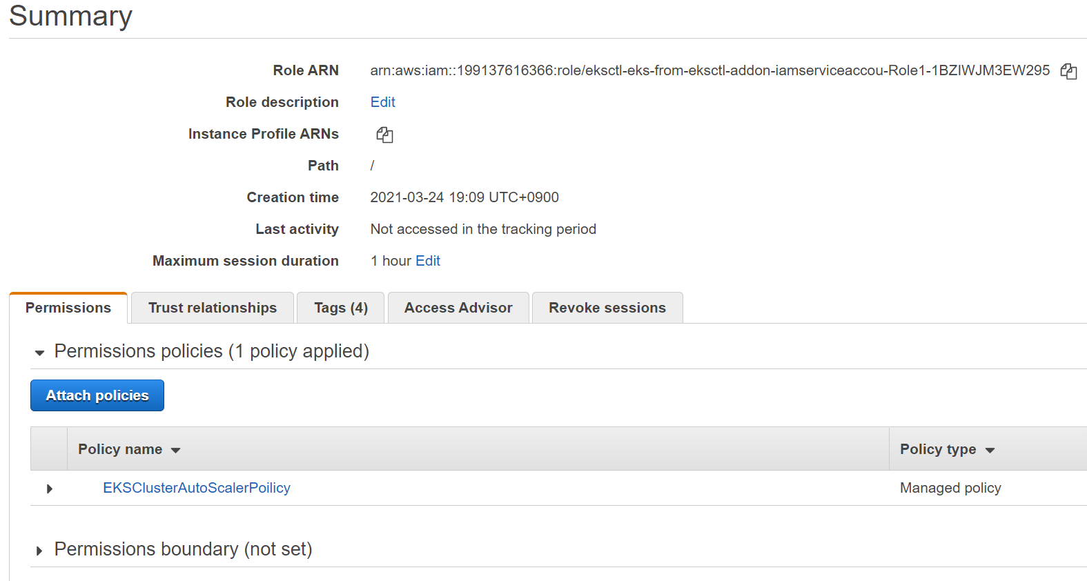 --attach-policy-arn arn:aws:iam::199137616366:policy/EKSClusterAutoScalerPoilicy \