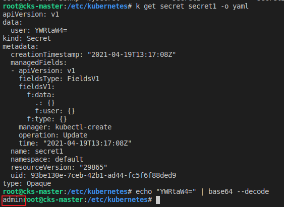 실제로 다음 명령어를 사용하여 etcd에 저장된 Secret을 바로 확인할 수 있다.