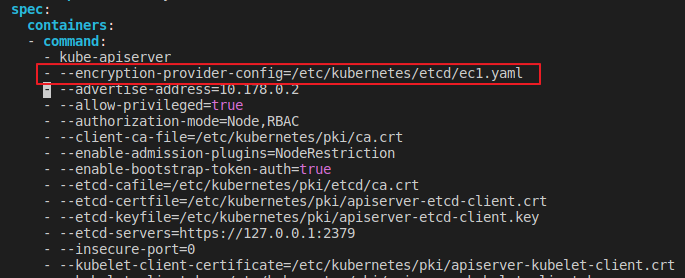 - kube-apiserver의 '--encryption-provider-config' 옵션 활성화