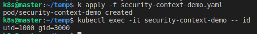 UID=1000, GID=3000인 User를 기본으로 사용하는 Pod은 다음과 같이 정의할 수 있다.
