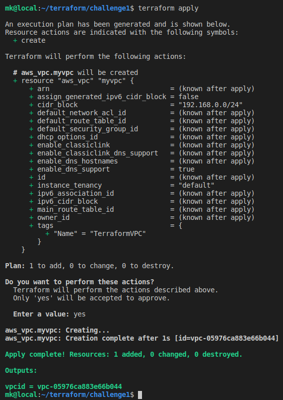 - Terraform 적용 후, VPC의 ID 출력한다.