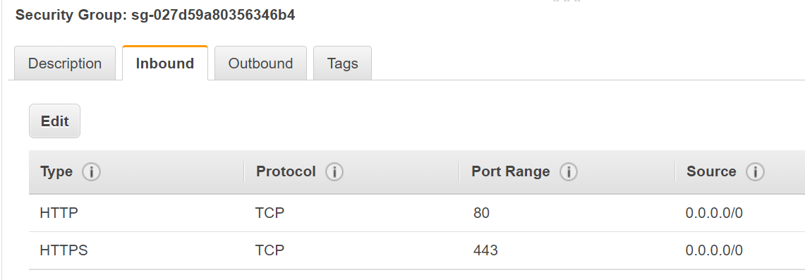 AWS 콘솔에서 Security Group 'Allow HTTPS', 특히 Inbound와 Outbound 부분을 확인해보자.