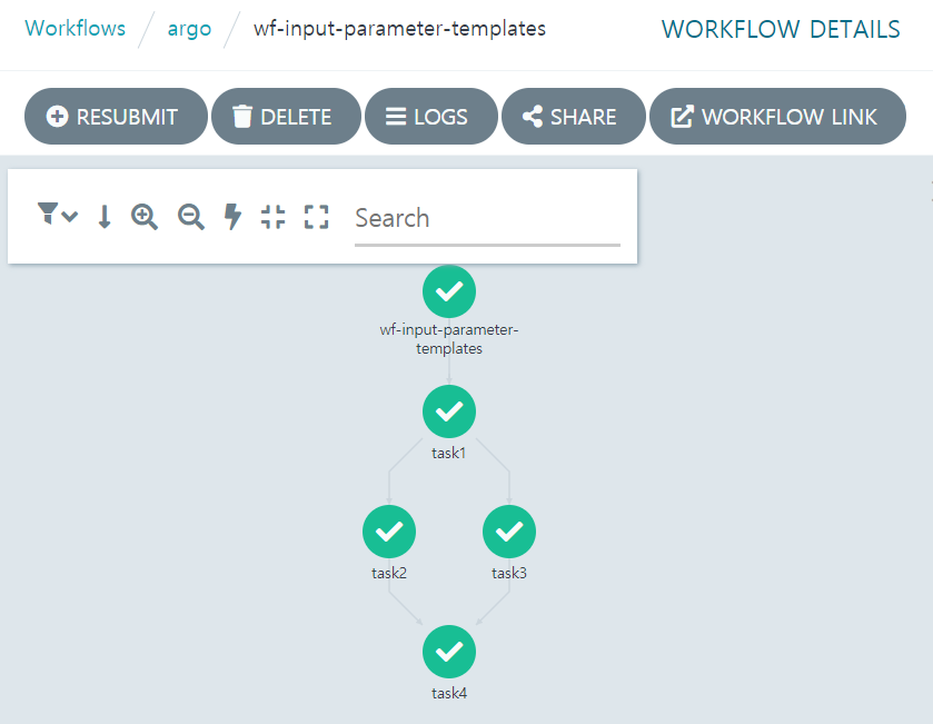 위 Workflow를 실행하면 다음과 같은 결과를 확인할 수 있다. 이번 시간부터는 kubectl 대신 argo cli 명령어를 사용한다.