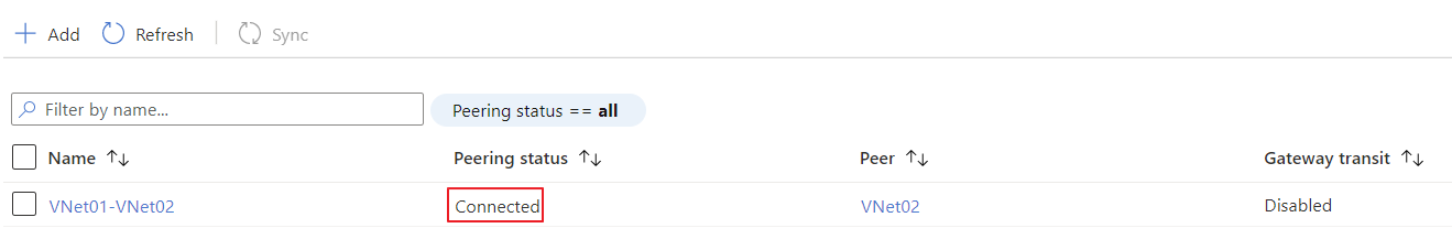 Peering status가 'Connected'가 되었을 때, 두 VNet간의 Peering이 정상적으로 동작한다는 것을 의미한다.