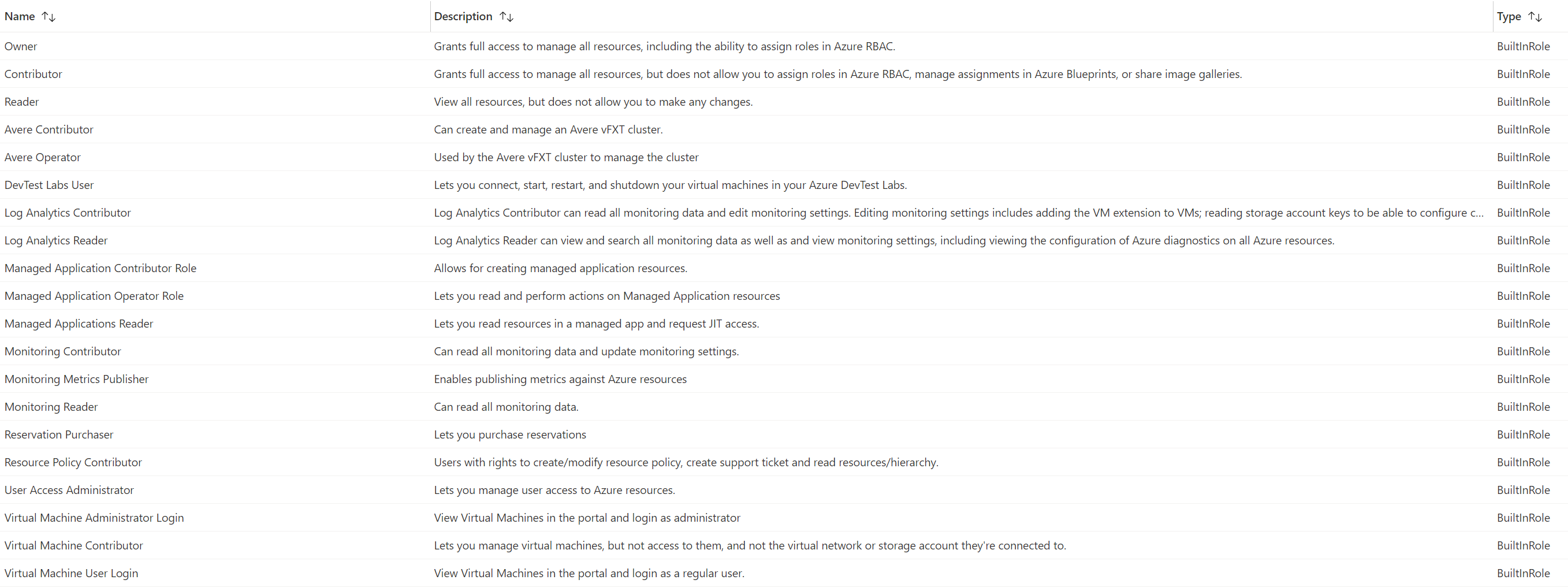 Role은 여러개의 Action을 취사선택한, '무엇을 할 수 있는가(What can be done?)'에 대해 정의된 일종의 Collection으로 생각할 수 있다. Azure는 각 Resource 유형마다 Owner, Contributor, Reader와 같은 사전 정의된 Role을 제공하고 있으며 이를 BuiltInRole이라고 한다.