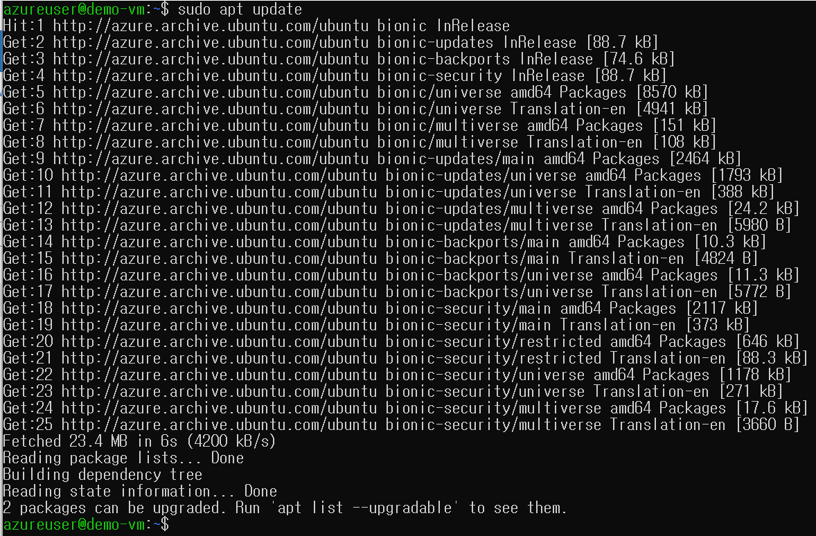 다시 'apt update'를 시도하면 이번엔 정상적으로 실행되는 것을 알 수 있다.