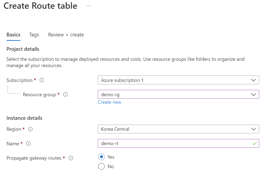 Route Table을 생성하고 여기에 사용자가 직접 Route를 정의하는 방식이다. Route 추가시, IP Address 범위(CIDR)과 이에 대한 Next hop을 지정할 수 있다.
