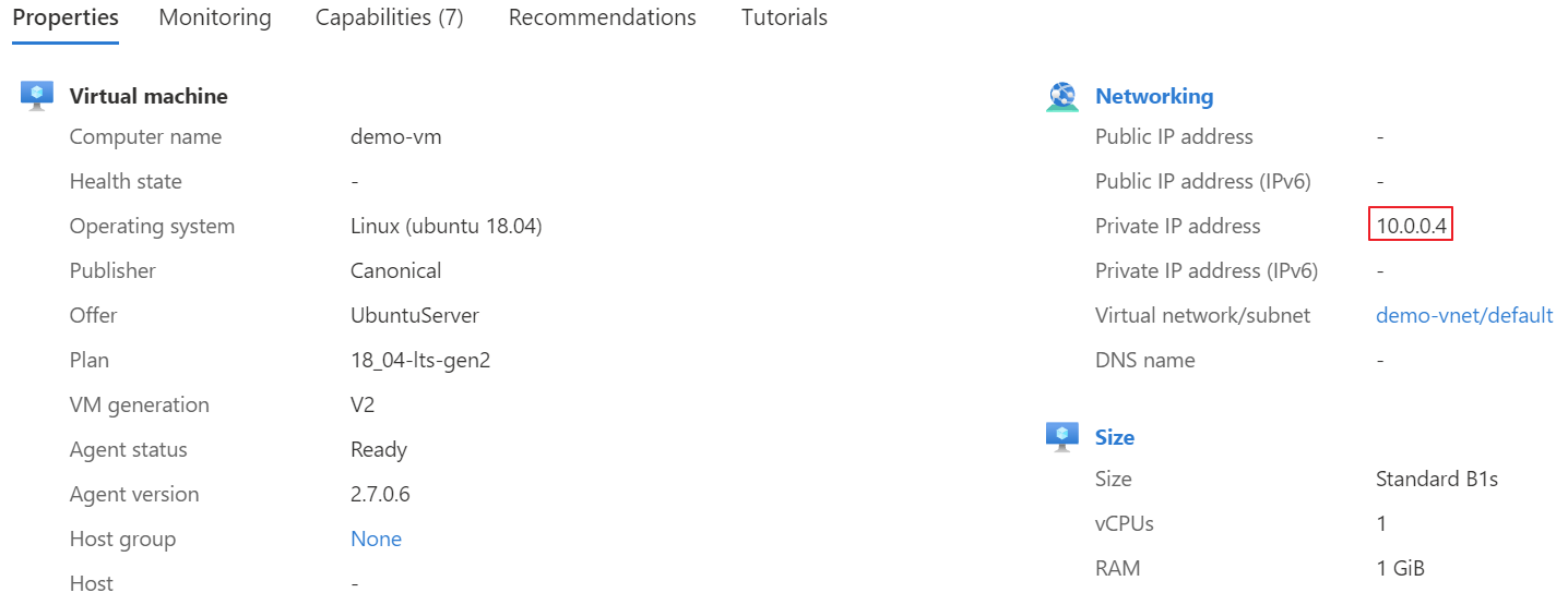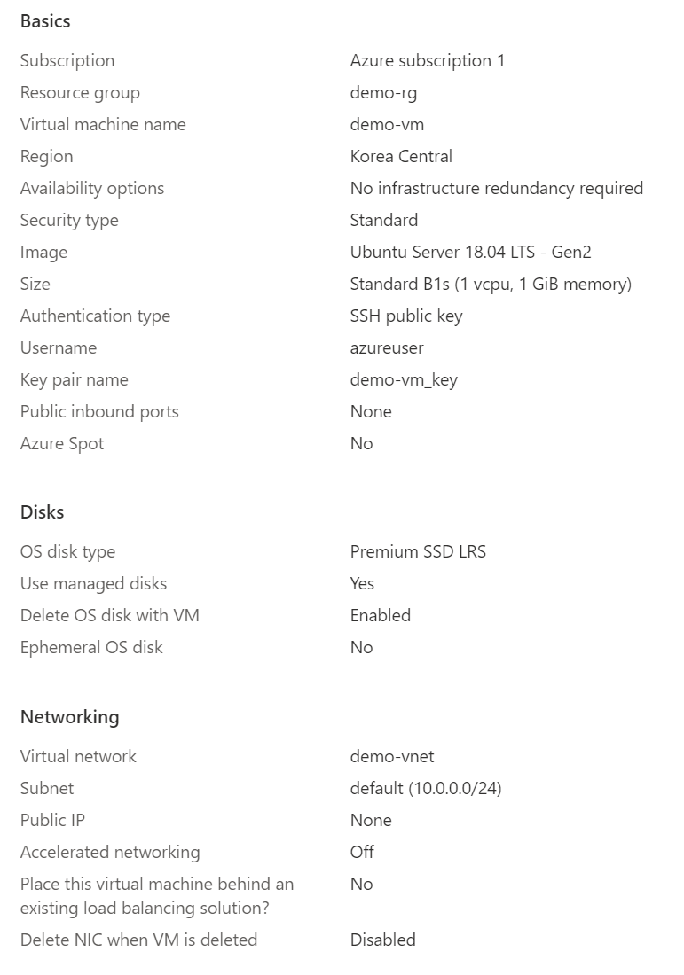 - Subnet 'default'에 아래와 같은 VM을 생성하였다.