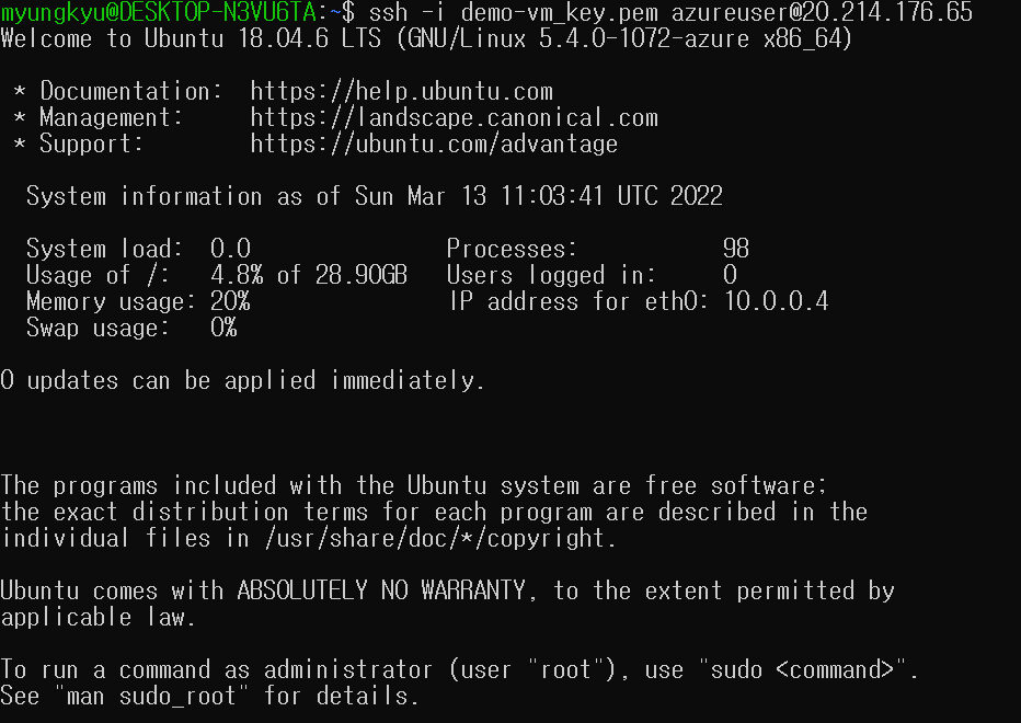 VM 인스턴스 생성시 다운로드했던 SSH Key(.pem)를 통해 연결을 시도해보자.