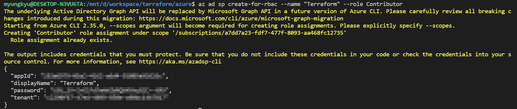az ad sp create-for-rbac --name "terraform" --role Contributor