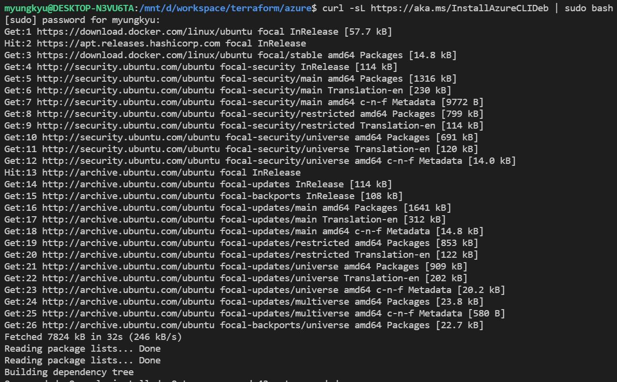 Linux에서 아래 명령어로 Azure CLI를 설치할 수 있다.