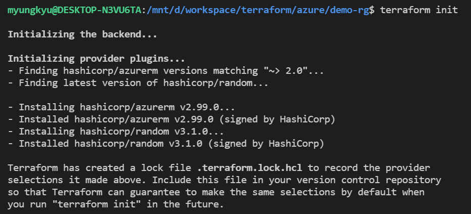 환경설정이 제대로 되었는지 확인해보자. 우선 demo-rg라는 디렉토리를 만든다.